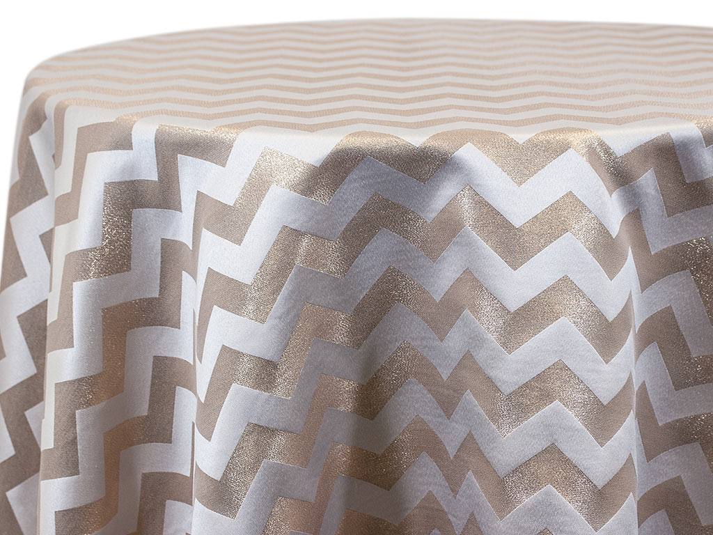 < All Metallic Fabrics Chevron Metallic DescriptionWashing Instructions Fabric Width – 59″. 100% Polyester. Available in Black / Silver, White / Champagne. Chevron Metallic – Champagne